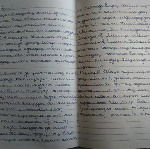 Ұлы Жеңістің 75 жылдығы қарсаңында өскелең ұрпаққа патриоттық тәрбие беру мақсатында 8-11-сынып оқушылары арасында "Ұлы Жеңіс-халықтың өшпес ерлігі..." атты тақырыпта эсселер байқауы өткіз…