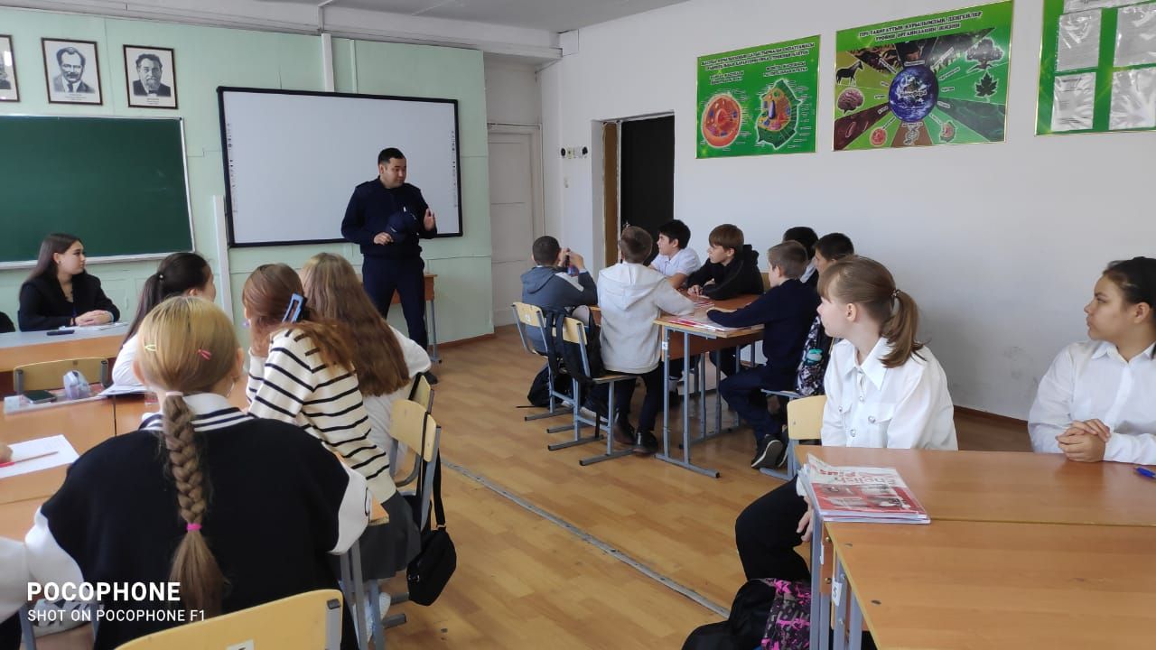 04.10.2024г. старший лейтенант полиции Октябрьского ОП УИП ОМПС Исакасов Жанболат Ерболатович провел беседу с учащимися 5-7 классов на тему:…