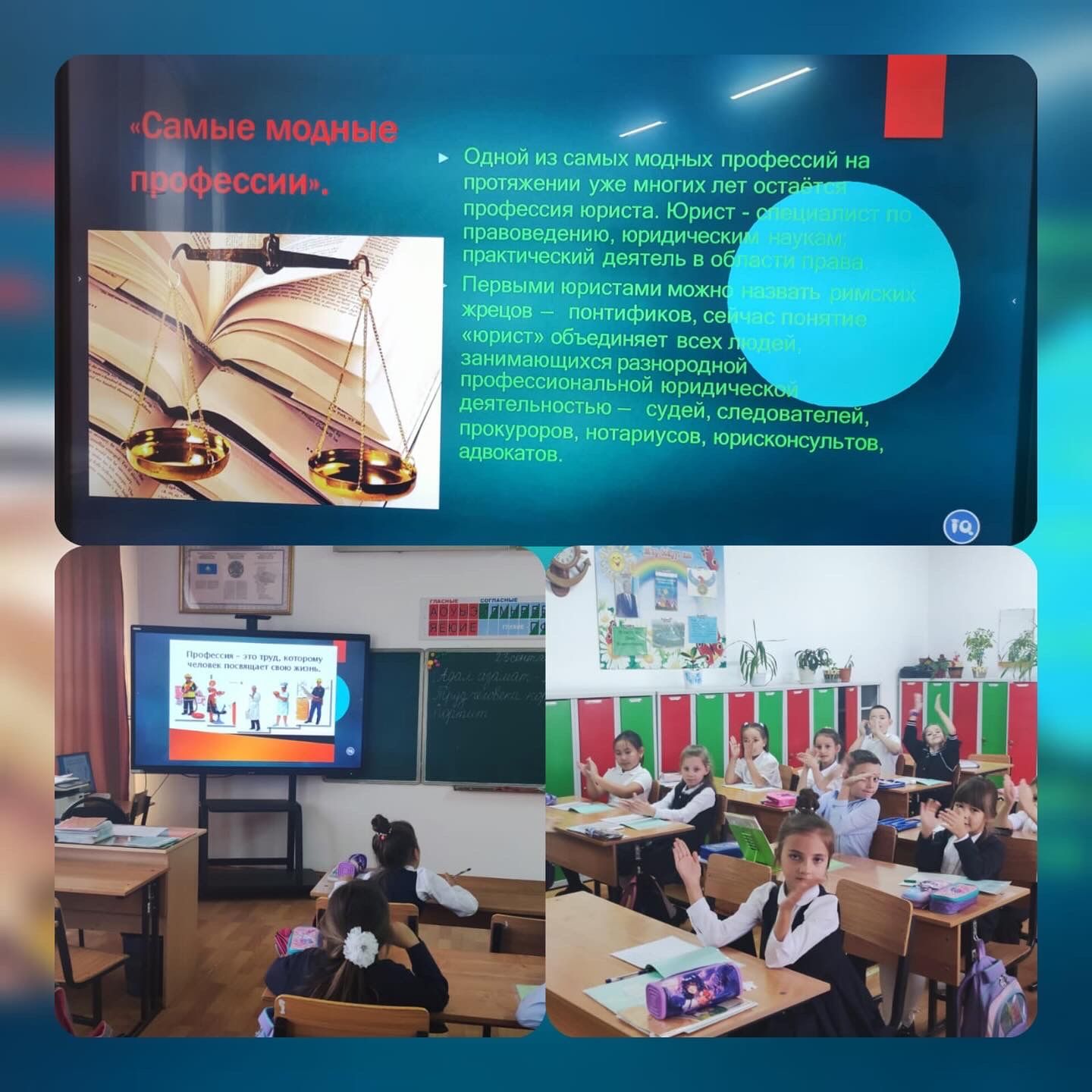 Сегодня в предверии Дня Труда в 7 "е" классе прошел классный час на тему "Адал адам- адал еңбек" , дети пополнили свои знания про разные профессии , и узнали много интересного .