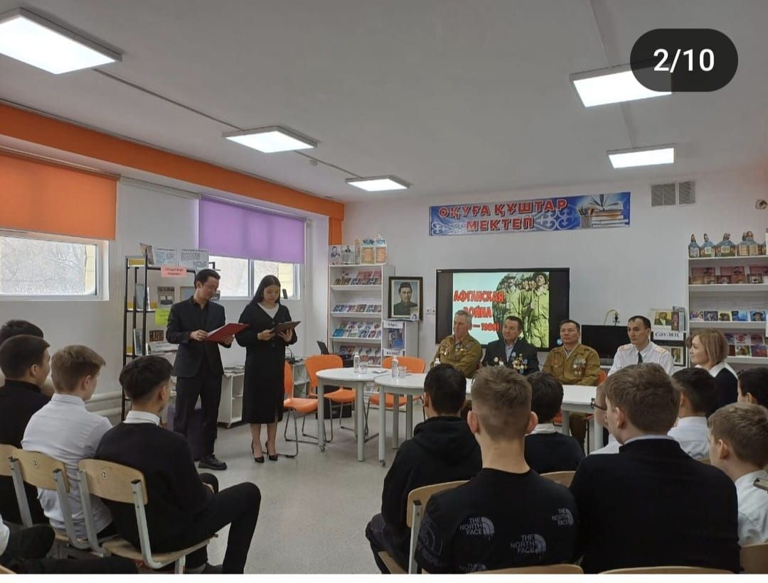 2024 жылдың 14 ақпанында Кеңес әскерлерінің Ауған жерінен шығарылғанына 35 толуына орай № 65 жалпы білім беретін мектебінде "Өшпес ерлікке м…