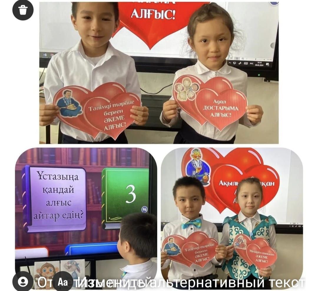 1 сыныптар арасында алғыс айту күніне орай “Алғыс айтамын ” викториналық ойын өтті. Ойынға оқушылар белсене қатысып, соңында алғыс айтып ,жылы лебіздерін білдірді.