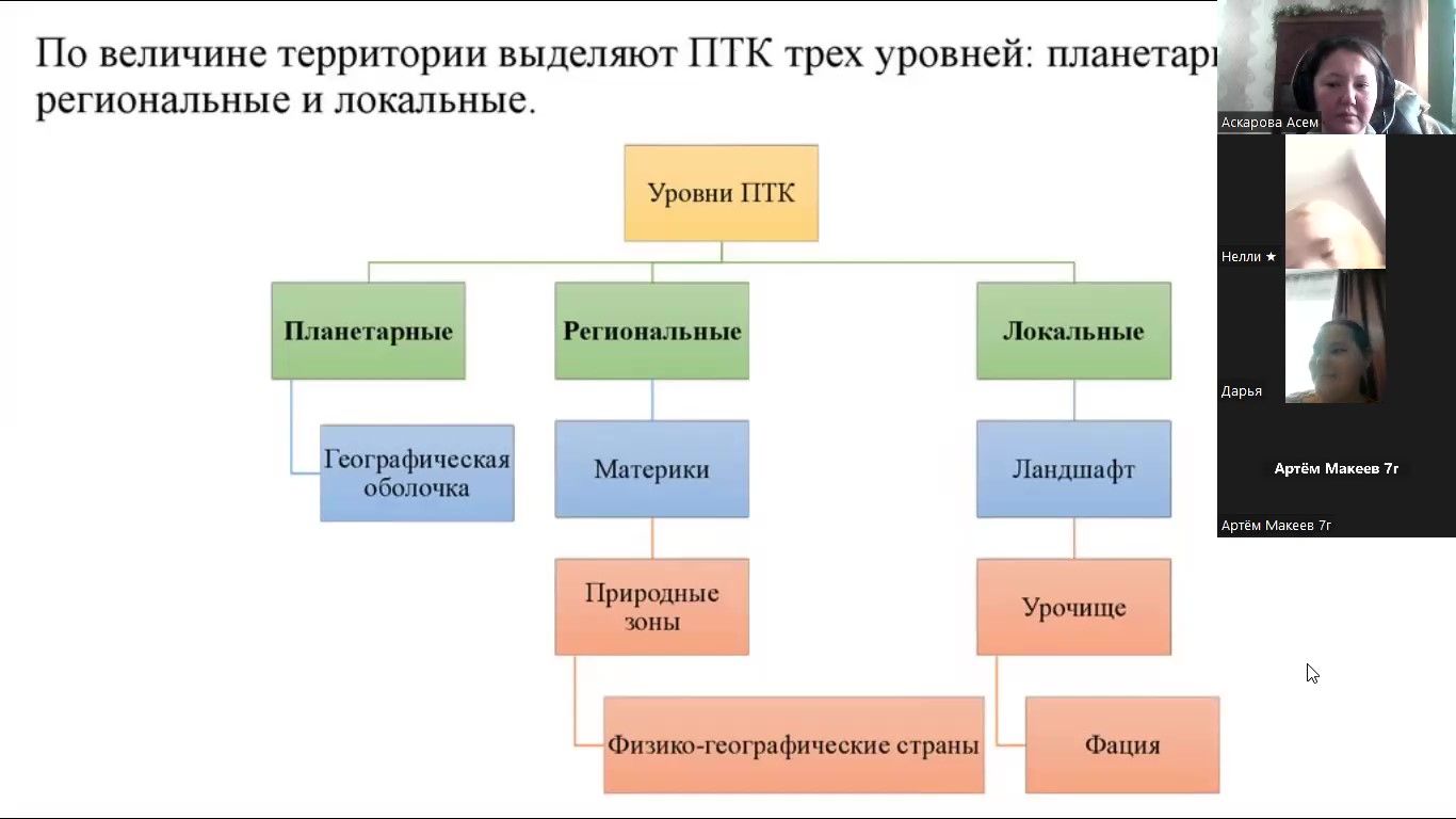 09.02.2024 г в 7-х классах был проведён урок географии в дистанционном формате на тему: "Виды природно-территориальных комплексов".
