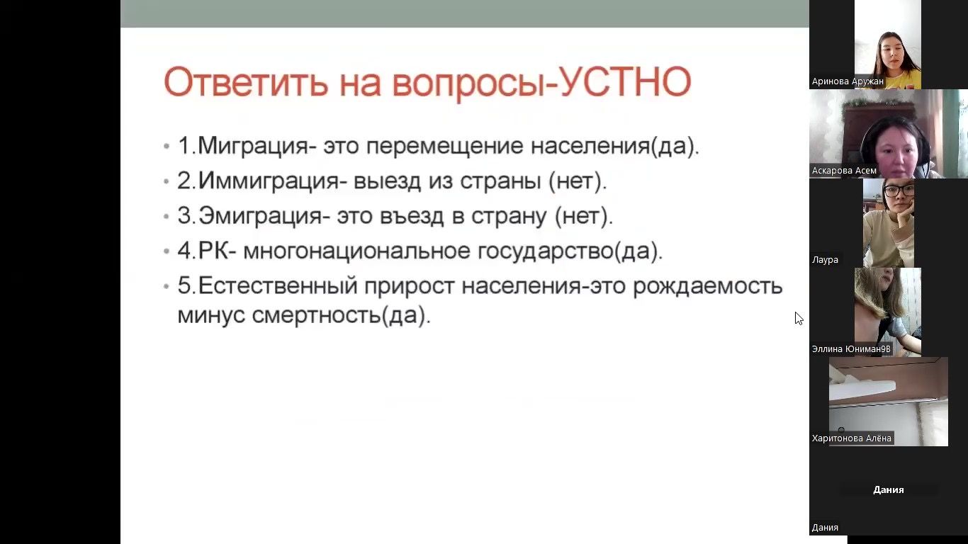 09.02.24ж 9”а”, "ә","б" сыныптарында ауа-райының қолайсыздығына байланысты сабақ ZOOM платформасында өткізілді. География сабағы.Тақырыбы: Қазақстандағы еңбек ресурстарының сандық және сапалық құрам…