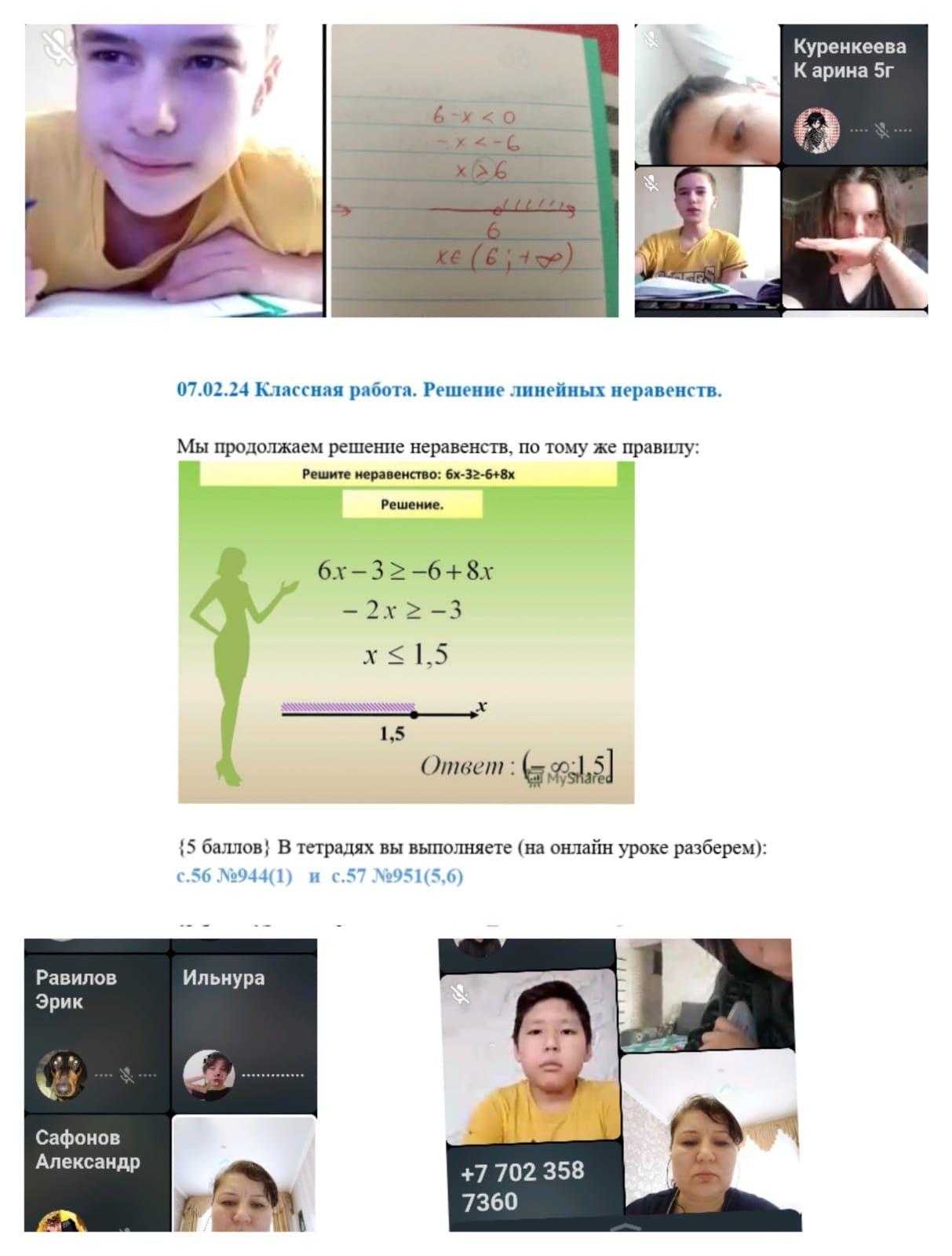 07.02.24 в 6-х классах прошел онлайн урок по математике, по теме "Решение линейных неравенств". Учитель: Аужанова Г.В.