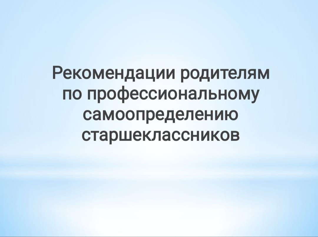 Рекомендации родителям по профессиональному самоопределению старшеклассников. Педагог -психолог Радченко А.С.