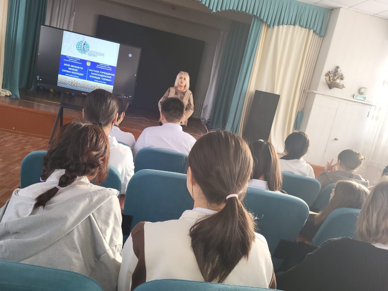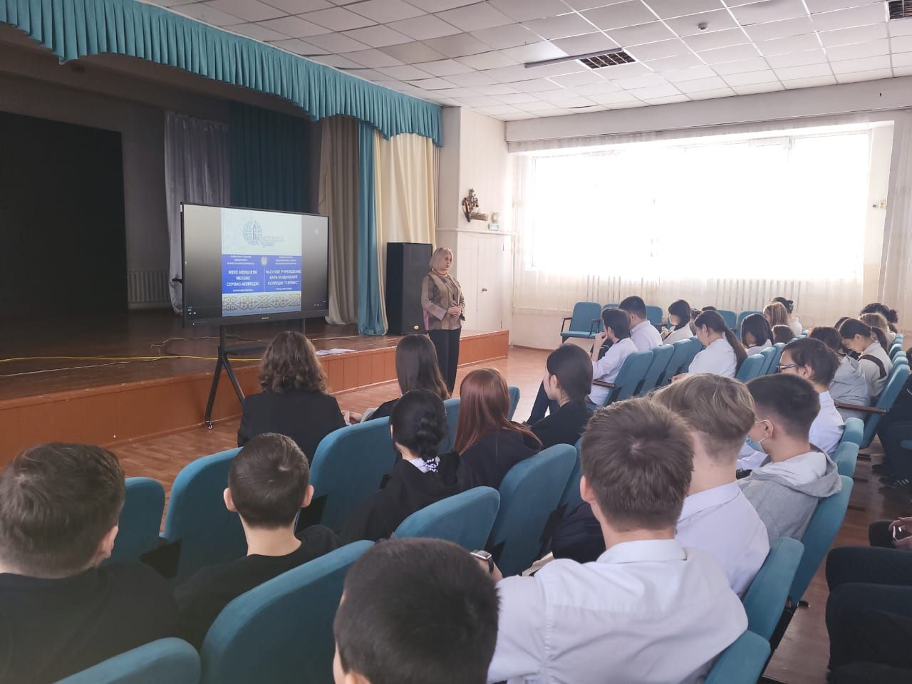12.01.2024ж. Қарағанды қ., 11А-шағынауданы, 11/3-құрылыс мекенжайында орналасқан Сервис колледжінің өкілі өндірістік шебері Беляева Людмила Ивановна 9-сынып оқушылары арасында кәсі…