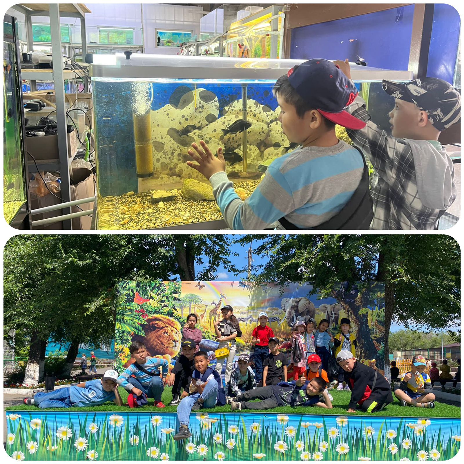Балалар таңғы астан соң асыға хайуанаттар бағына кетті. Әр түрлі аңдар мен құстарды қызыға тамашалады. Әркім өзінің ұнатқан жануарлары туралы айтып, ойларымен бөлісті.