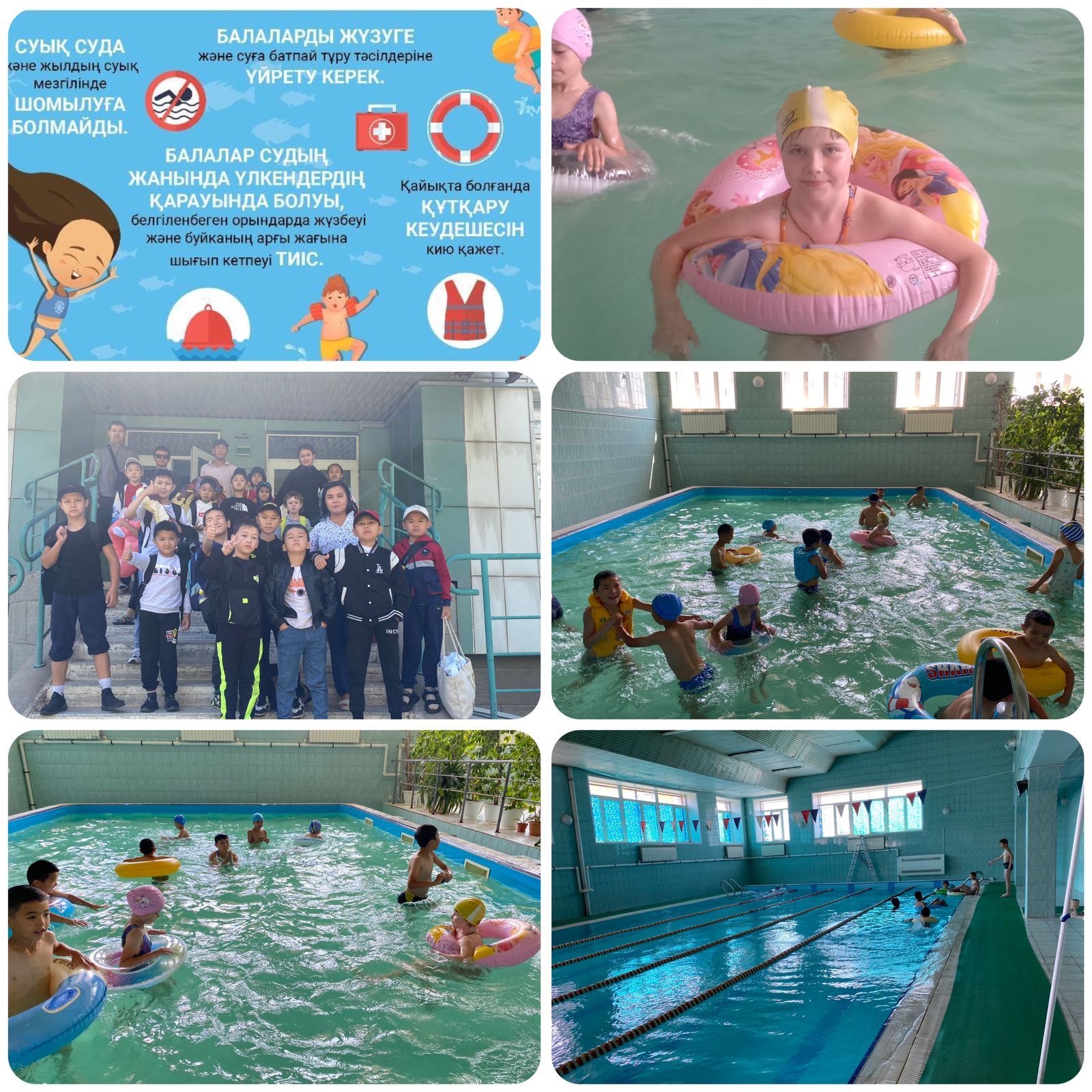 Денсаулық күніне орай 2 маусымның балалары бассейнге барып келді. Алдымен балаларды суда жүзу қауіпсіздік ережелерімен таныстырдық.