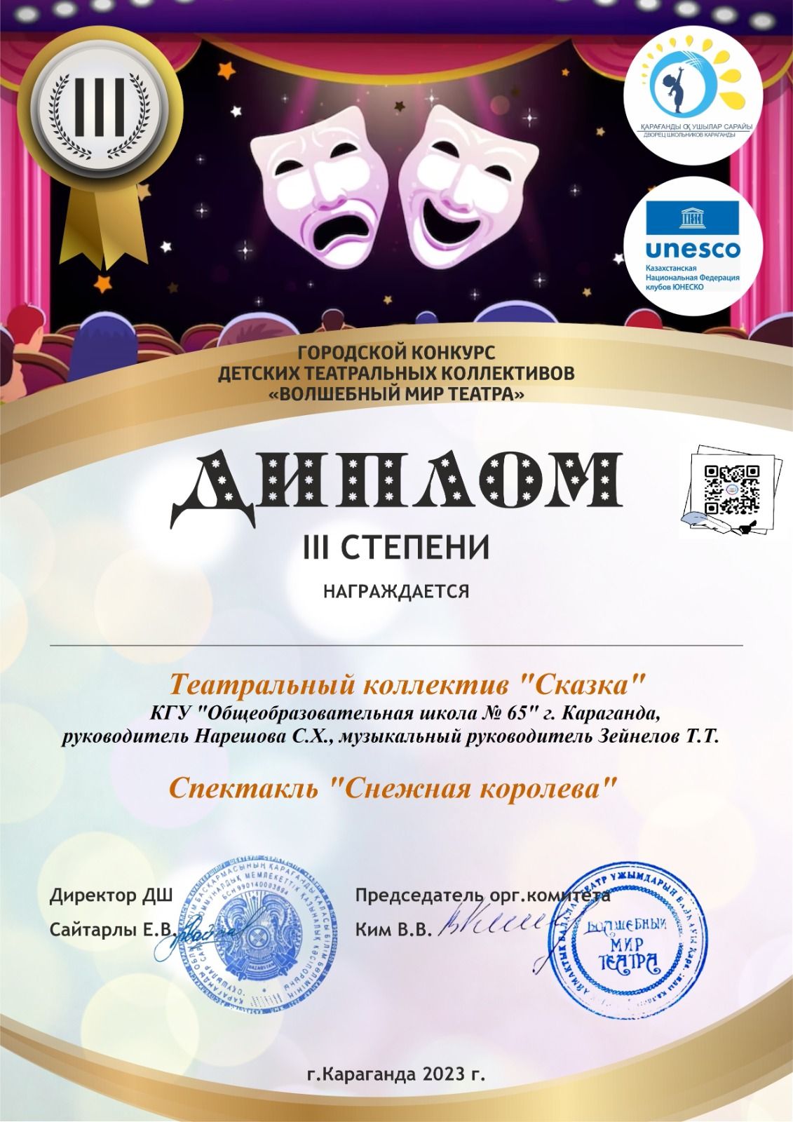 В городском конкурсе "Волшебный мир театра" приняли участие 22 театральных коллективов г.Караганды. Театральный кружок "Сказка" под руководством уч…