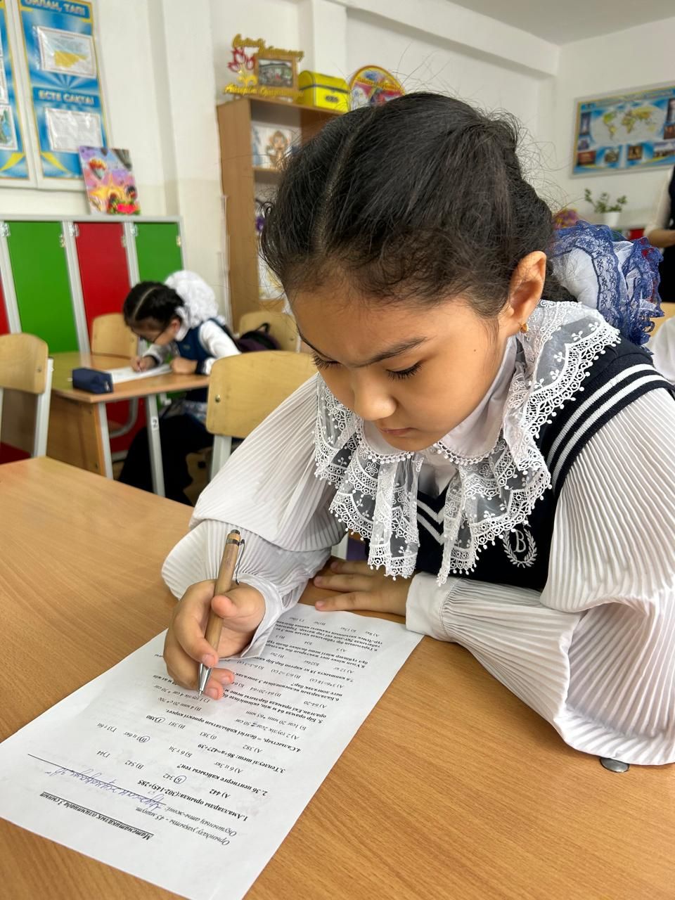 Қарағанды қаласы «№65 ЖББМ» КММ 10 «А» сынып оқушысы Қалиева Ақерке облыстық «Тұлпар мініп, ту алган» жыр жаттау байқауына қызу дайындық үстінде.