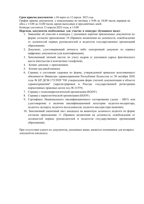 Срокприемадокументов:с 04 марта по 12апреля 2023 года