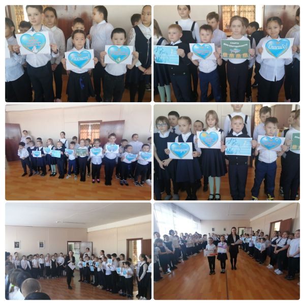 В рамках празднования Дня благодарности ученики 1 "Д" класса поздравляют всех с праздником и говорят слова благодарности.