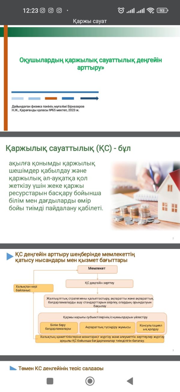 Тақырыбы: "Оқушылардың қаржылық сауаттылық деңгейін арттыру"