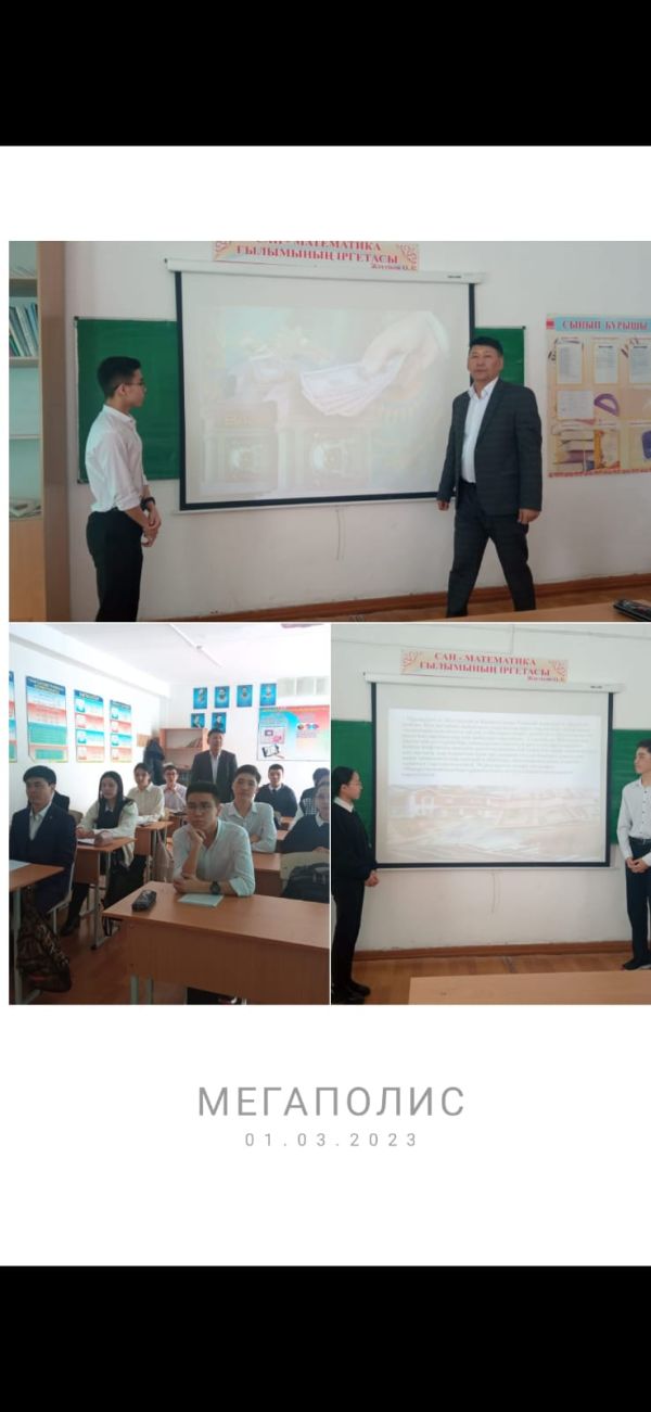 1 наурыз Қорғаныс күніне орай 10 "А" сыныпта "Төтенше жағдай кезінде өзін-өзіңді ұстау ережелері" тақырыбында сынып сағаты өтті. Мақсаты: оқушыларға табиғатта болатын төтенше жағ…