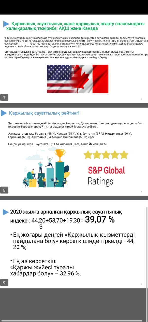 Мақсаты: Қаржылық сауаттылық - бұл ақылға қонымды қаржылық шешімдер қабылдау және қаржылық әл-ауқатқа қол жеткізу үшін жеке қ…