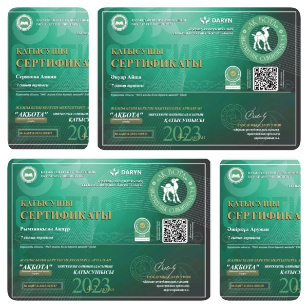 Наши достижения в олимпиаде "Ақбота". Ребята 9-10х приняли активное участие в данной олимпиаде и показали хорошие результаты. Учитель математики: Моисеенко М.А.