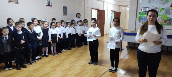 13.02.2023 бастауыш сыныптар арасында "Ерлік- ұрпаққа үлгі"тақырыбында саптық жиын өтті.