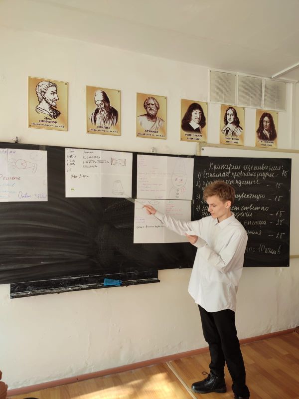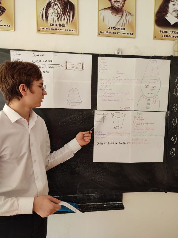 Сегодня 02.02.23.г проведен урок геометрии в 11Б классе на тему " Усечённый конус". Ребята решали практико-ориентированные задачи в группах. Провела учитель математики: Моисеенко М.А.