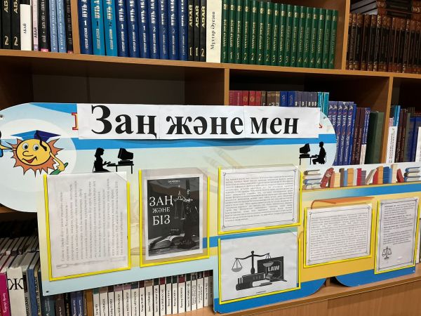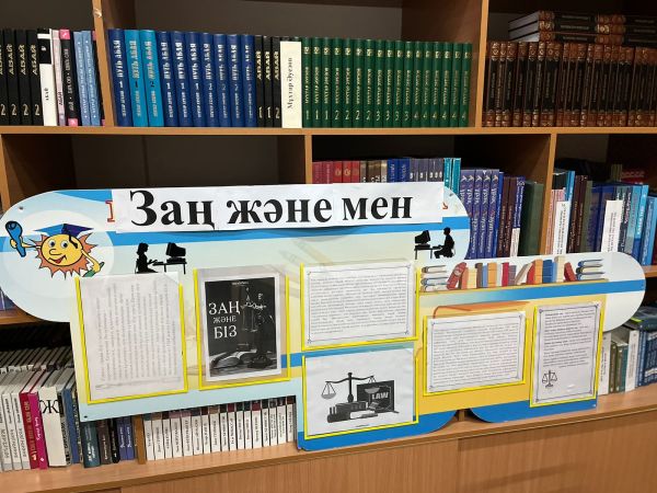 65 мектеп кітапханасында, ”Заң және мен” атты стенд жасалынып,кітап көрмесі өтті