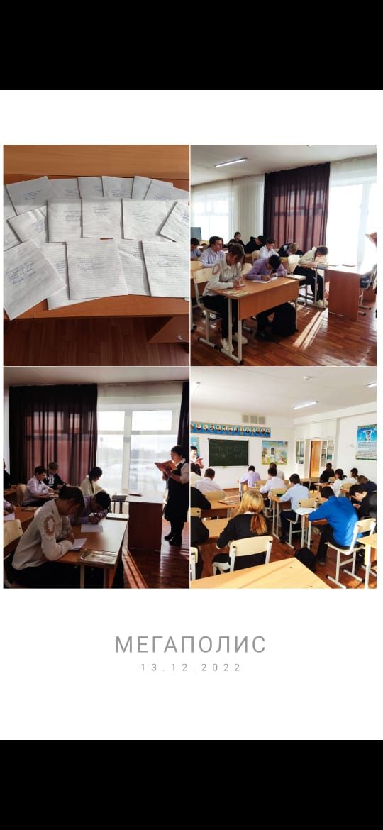 13.12 күні 9 г, д, е, ж сыныптар арасында "Тәуелсіздік - басты құндылығымыз!" тақырыбында облыстық диктант жазу жұмысы болды. Жауаптылар: Каймолдина Г.К., Омарова С.Ж.