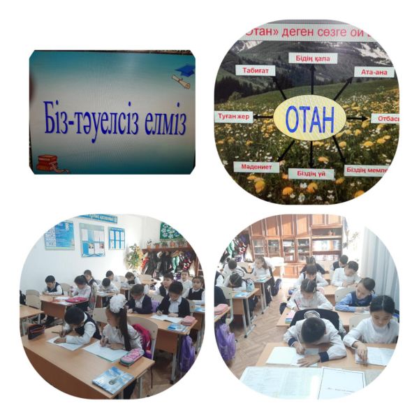 ҚР Тәуелсіздік күніне орай 6 "а"сыныбында "Тәуелсіздік-тәу етер жалғыз кием!" тақырыбында сынып сағаты өтті. Сынып жетекшісі: Мукышева М.К.