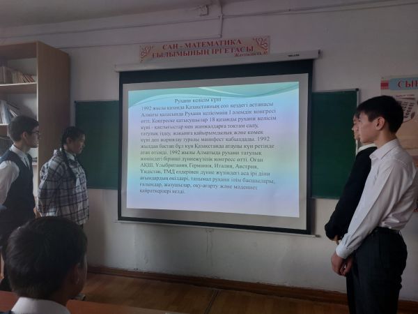 17.10.22 ж мектебімізде “Рухани келісім” атты саптық жиыны өтті. Мақсаты: Рухани адамгершілік құндылықтар мен білім жүйесін қалыптастыру