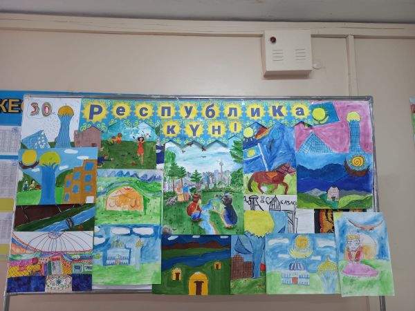17 октября 2022 года Ко Дню Республики в «Общеобразовательной школе № 65» для учащихся был оформлен стенд на тему: «Қыр…