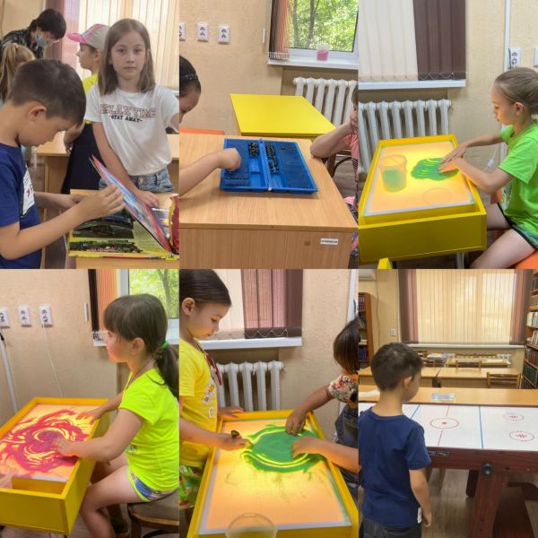 Балалар кітапханаға барып, түрлі оқулықтармен және қауіпсіздік ережелермен танысты. Кітапханадан шыққан соң таза ауада серуендеп, түрлі ойындар ойнап, жерге түрлі-түсті борлармен сурет салды.