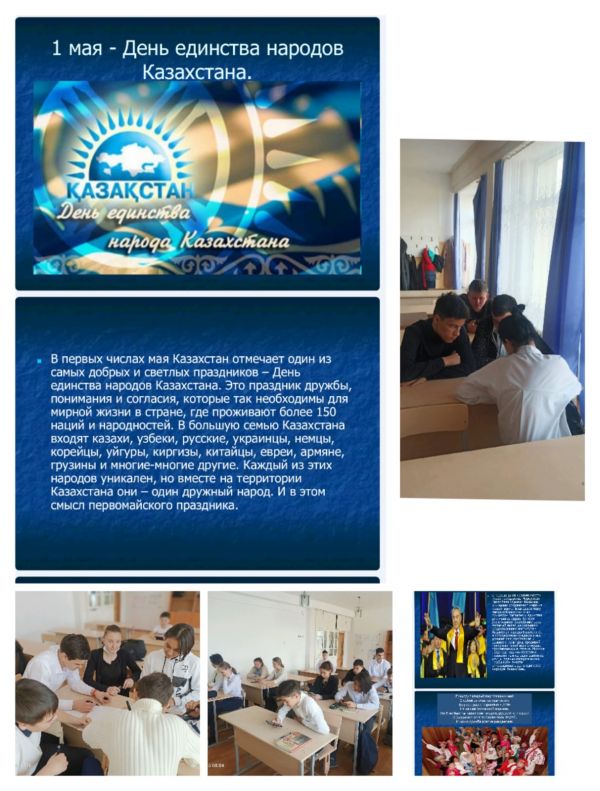 25.04 в рамках празднования "Дня Единства Народов Казахстана" в 9 "Д" классе прошел классный час "1мая - День Единства Народов Казахстана" учащиеся рассмотрели слайды с…