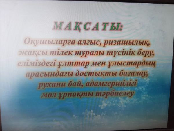2 ә сыныбында 1 наурыз Алғыс айту мерекесіне арналған "Алғыс айту парызым" тақырыбында сынып өтті.Мақсаты оқушылардың жанұяға, ата — анаға, үлкен — кішіге деген сүйіспеншілігін…
