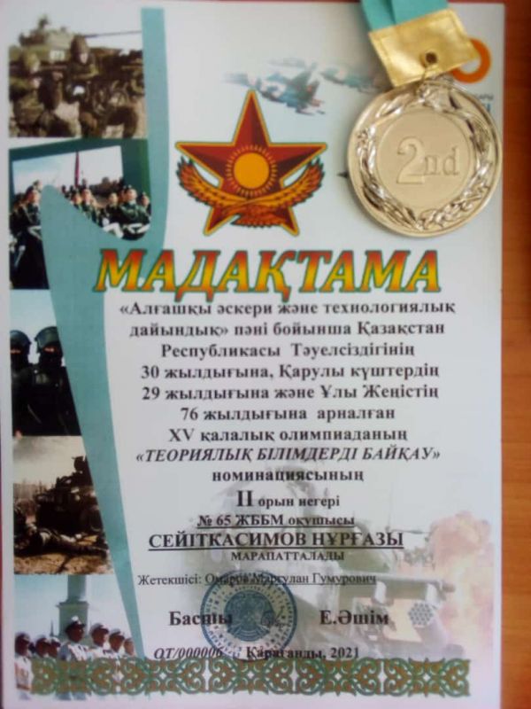 «Алғашқы әскери және технологиялық дайындық» пәні бойынша Қазақстан Республикасы Тәуелсіздігінің 30 жылдығына, Қарулы күштердің 29 жылдығына және…