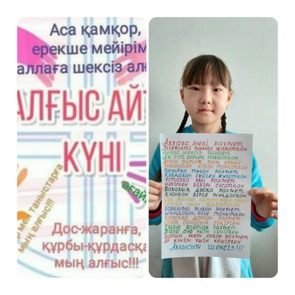 Алғыс айту күні – бұл, ең алдымен елімізде тыныштық пен үндестік, өзара сенімділік пен барлық қазақстандықтарға деген құрмет. 3 В сыныбында алғыс айту мерекесіне орай тәрбие сағаты өткізілді.
