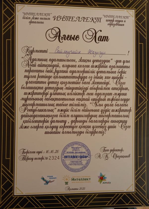 Қазақстан Жазушылар Одағының мүшесі ақын Бағдат Мүбарактың шығармашылығына арналған "Өлең десе, өртенеді өзегім" атты қалалық байқауда мектебіміздің 11"А" сынып оқушысы: Ахмет Ақ…