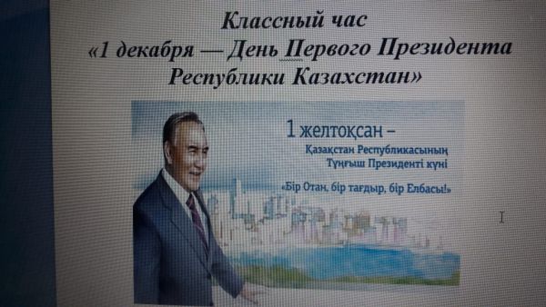 30.11.2020 ж. 4 а сынып оқушылары арасында "1 желтоқсан - Президент күніне" арналған сынып сағаты өтілді. Мақсатымыз: Жас ұрпақты ел Президентін құрметтеуге , патриотизм мен От…
