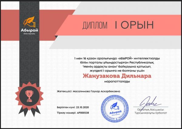 Республикалық "Менің ардақты анам" байқауына қатысып, жүлделі орындарды иеленген оқушыларымызды құттықтаймыз!