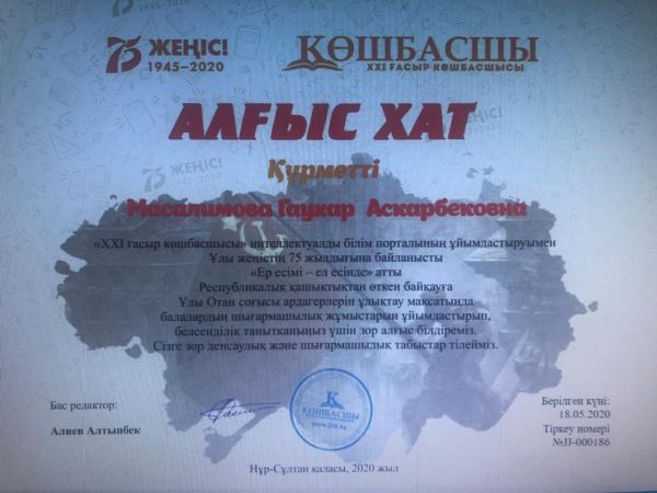 Ұлы Жеңістің 75 жылдығына орай ұйымдастырылған Республикалық қашықтықтан өткен эссе байқауында жүлделі орындарға ие болған мектебіміздің оқушыларын құттықтаймыз!!!