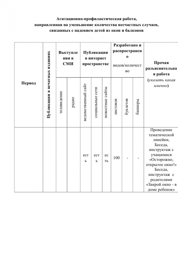 В КГУ «СОШ № 65» ежемесячно проводится агитационно-профилактическая работа, направленная на уменьшение количества несчастных случаев, связанных с падением детей из окон и балконов.