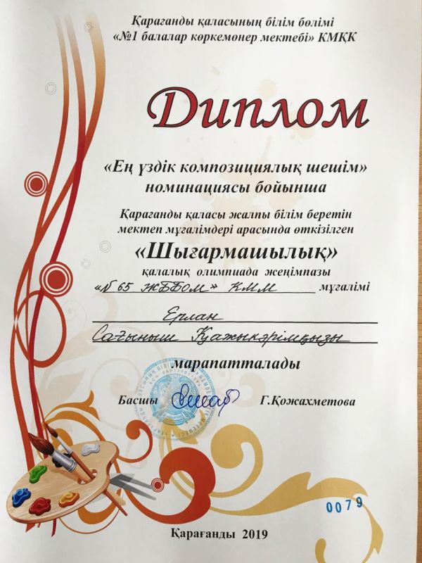 В городской олимпиаде среди учителей по ИЗО участвовала наша коллега, и получила диплом по номинации "Самое лучшее композиционное решение".