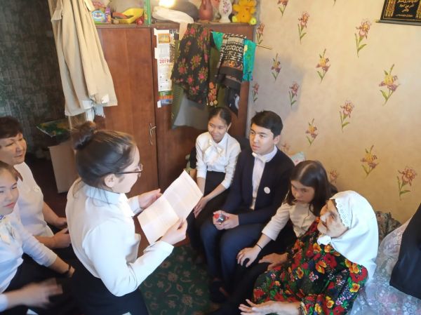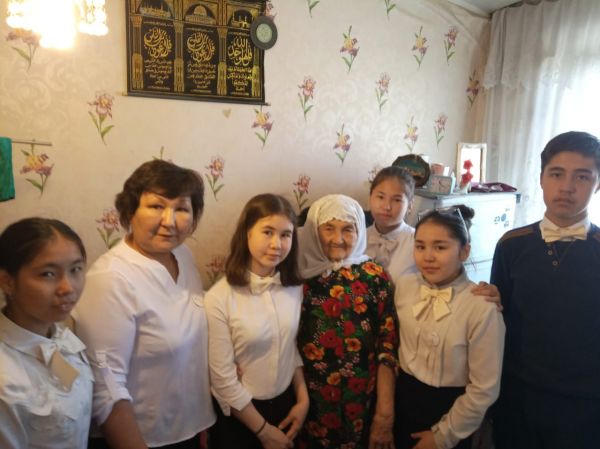 03.05.2019 г. ученики 8 «А» класса КГУ СОШ № 65 г. Караганды с классным руководителем Туяковой А.К. в преддверьях празднования 9 мая посетили ветерана тыла Загидуллину Майсару Х…
