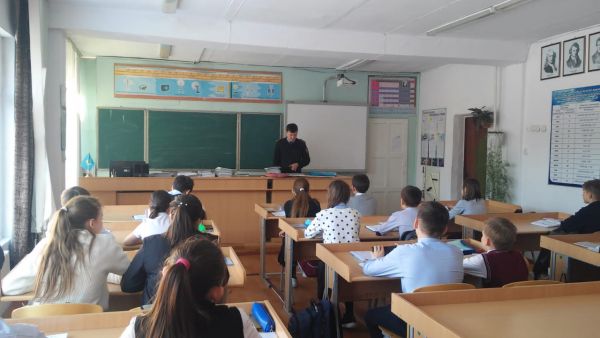 «Бақытты балалық шақ» онкүндігінің аясында 15.02.2019ж. мектеп инспекторы Садуакасов Азамат Канатович 7-ші сыныптардың оқушыларымен құқық бұзушылықтың алдын алу туралы дәріс жүргізді.