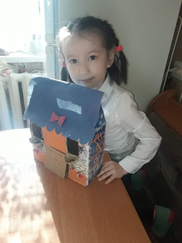 ЖББ №65 орта мекткеп оқушысы Шарапбай Аяжан бос уақытын тиімді пайдаланып мектебімізде өтіп жатқан іс-шараға қатысып отырады.Қағаз қалдықтарынан,пва желімін қолдана отырып киіз үй жап шығарды.