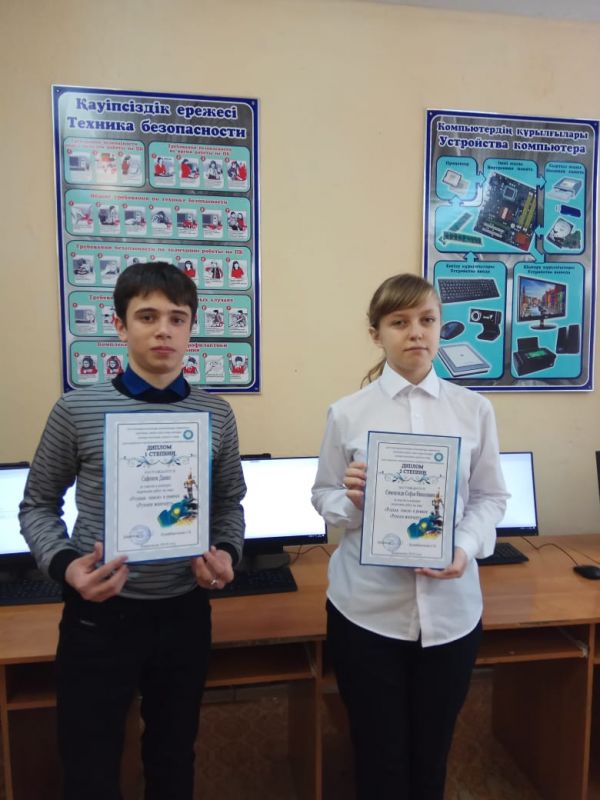Поздравляем  победителей конкурса творческих работ на тему "Родная земля" в рамках "Рухани жаңғыру"Сафонова Данила, Симпилиди Софию, Тынгышеву Камилу
