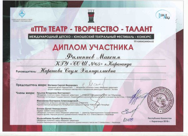 С 26-28 марта 2018 года в г.Караганде проходил международный детско-юношеский фестиваль-конкурс «ТтТ» Театр—Творчество-Талант.