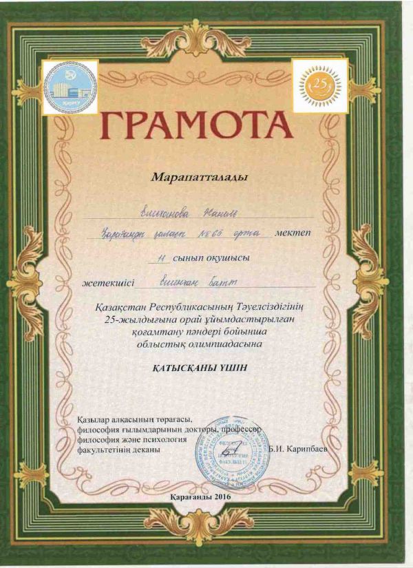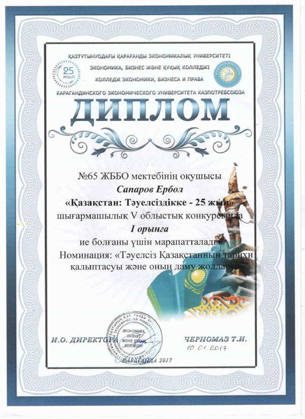 Қаңтар айының 26-ы күні қалалық білім бөлімінің ұйымдастыруымен "Жасын ғұмыр - Қасым ғұмыр" атты 1 қалалық Қасым оқуынан "Жүйріктен жүйрік озар жарысқанда" номинациясы бойынша, м…