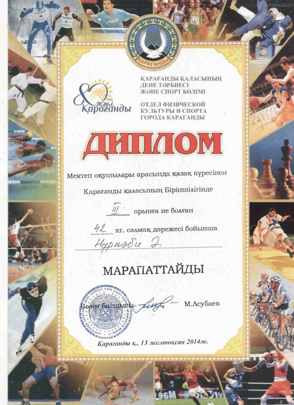 13.12.2014 жылы ЖББ ОМ №8 мектепте оқушылар арасында өткен қазақ күресінен Қарағанды қаласының біріншілігінде әр түрлі салмақ дәрежесі бойынша ЖББ ОМ №65 мектеп оқушылары: Зотов О (81 кг…