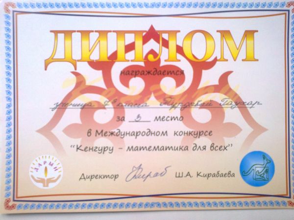 Қарағанды қаласы №65 орта мектебінің 9Ә сынып оқушысы Омарова Жанель «Кенгуру-математика для всех» Халықаралық байқауына қатысып 2-орын, 7Ә сынып оқушысы Тұрдыбай Гаухар 3-орын алғаны үш…