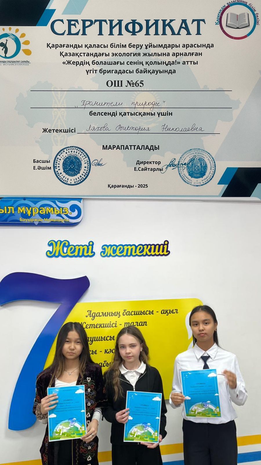 Команда КГУ «ОШ 65» «Хранители природы»