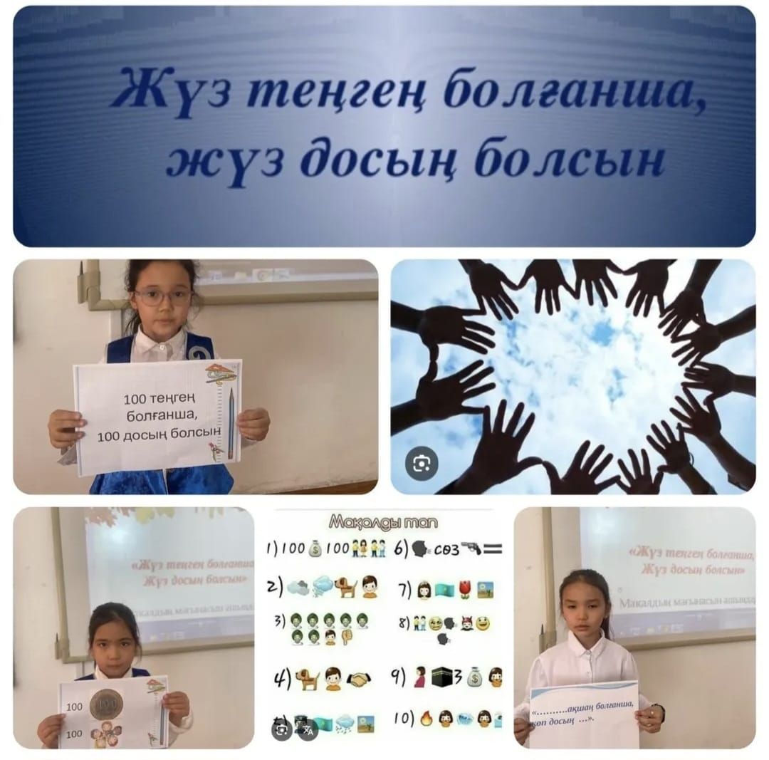 Қаржылық сауаттылық апталығы аясында бастауыш сынып оқушыларының арасында «100 теңгең болғанша, 100досың болсын » атты сынып сағаты болып өтті.