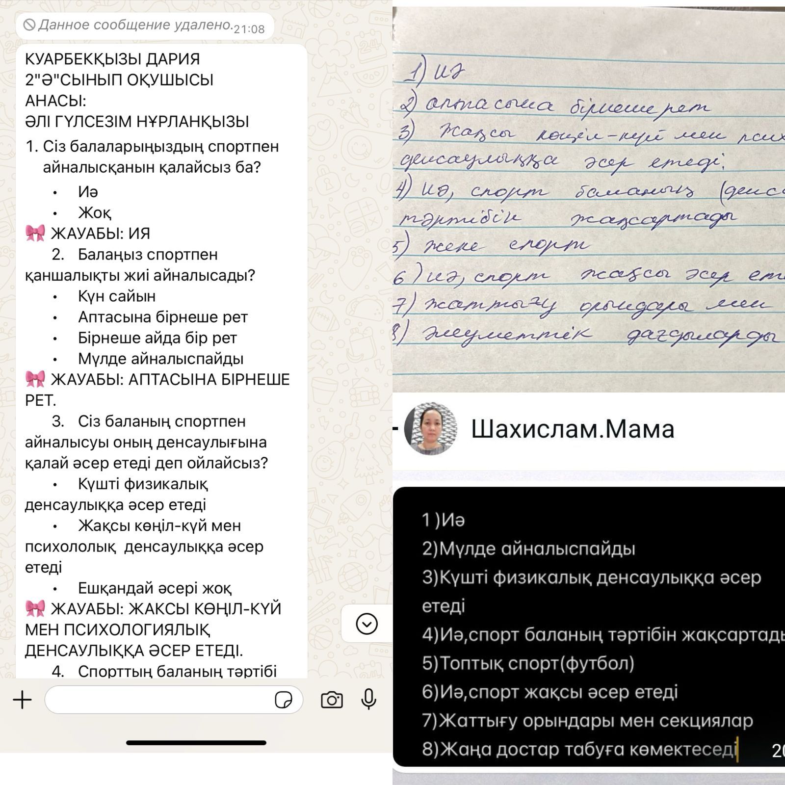 "Менің баламның физикалық дамуы» тақырыбында ата-аналармен Whats App желісі арқылы сауалнама өткізілді.