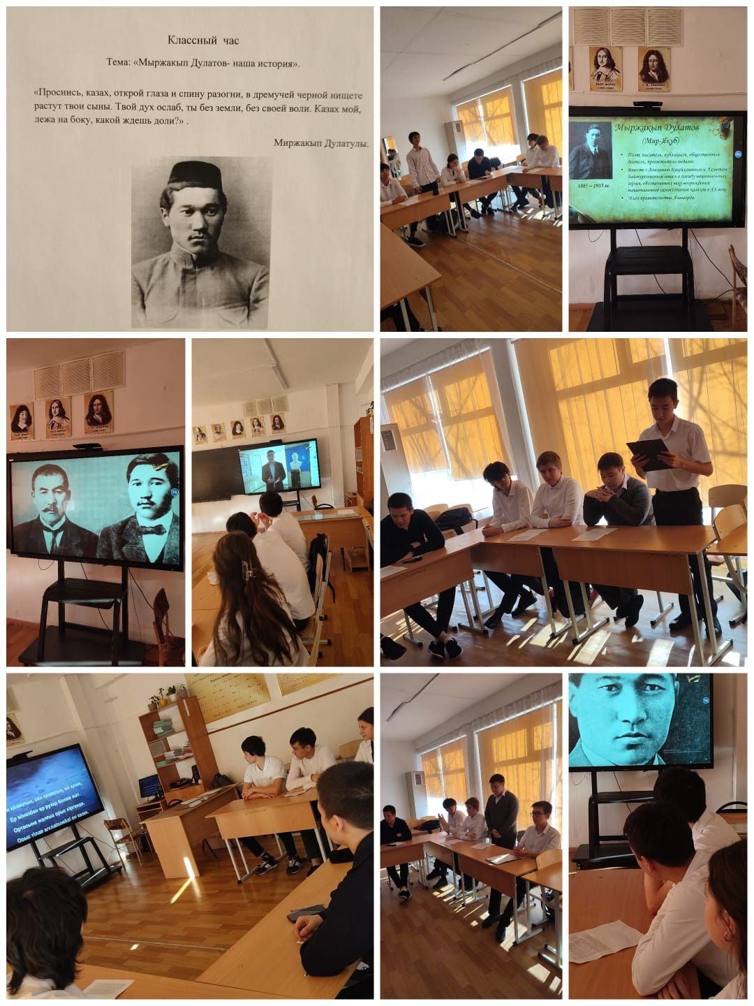Сегодня 25.11.24г в 11б классе был проведен круглый стол, посвященный поэту, публицисту и политическому деятелю Мыржакупу Дулатову. Классный час провела Моисеенко М.А.